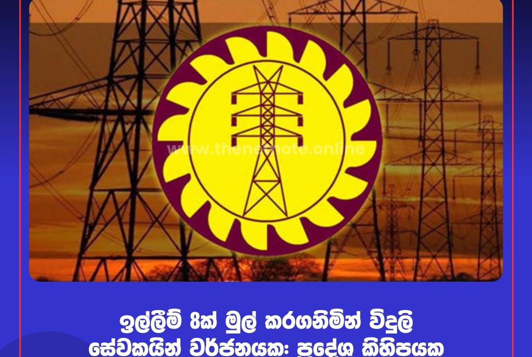 ලංකා විදුලිබල මණ්ඩලය ප්රතිව්යුහගත කිරීමේ ක්රියාවලියට එරෙහිව ක්රියාත්මක පැය 24ක වෘත්තීය සමිති ක්රියාමාර්ගය හේතුවෙන් කොළඹ සහ ගම්පහ දිස්ත්රික්කවල ප්රදේශ කිහිපයක විදුලි බිඳවැටීම් වාර්තා වී තිබේ.