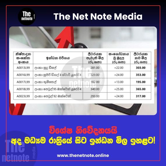 විශේෂ නිවේදනයයි: අද මධ්‍යම රාත්‍රියේ සිට ඉන්ධන මිල ඉහළට!